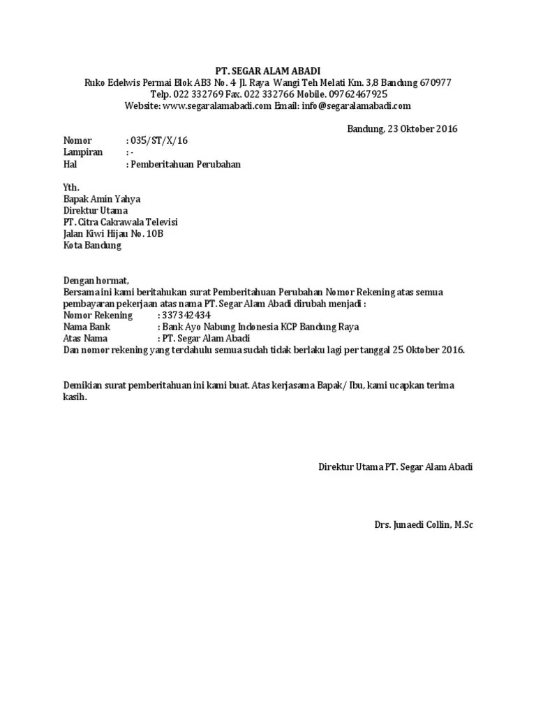 Contoh Surat Pemberitahuan Perubahan Rekening Bank Zenith Maritimetrainer Com