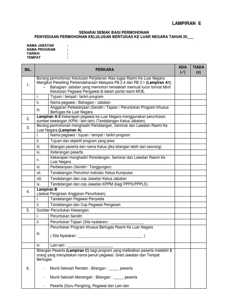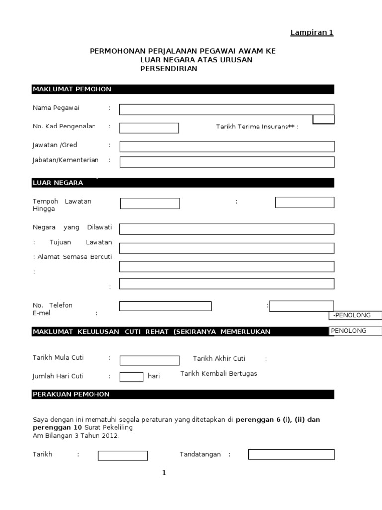 Borang Permohonan Perjalanan Ke Luar Negara Lampiran 1 Pdf